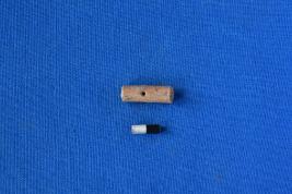 | Description / विवरण | A cylindrical bead or pendant of terracotta with a transverse perforation at the center and a smooth surface. |