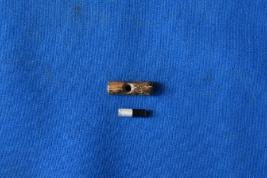 | Description / विवरण | A spacer bead of ivory with one end truncated, the other end thickened and the cross section is triangular. It is perforated transversely and also is hollow. |