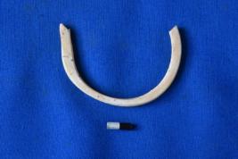 | Description / विवरण | A fragment of a bangle with brownish-white coloured surface and a rectangular cross-section. |