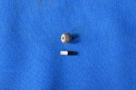 | Description / विवरण | A spherical shaped bead of terracotta in blackish colour with encrustations on the surface and perforation at the center. |