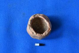 | Description / विवरण | A small bowl-like crucible of terracotta in red ware with a thin wall and traces of metal stuck on the interior. |
