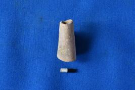 | Description / विवरण | A terracotta gamesman in red ware with tapering sides and circular flat base showing depression on top. |