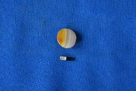 | Description / विवरण | A semi-circular shaped bezel of banded agate in white and orangish shade with a smooth and polished surface. |