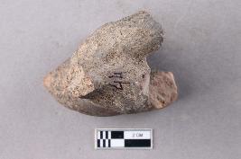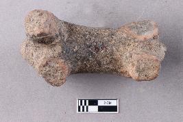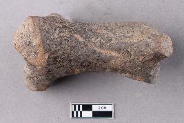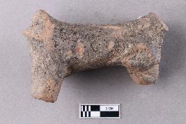 | Description / विवरण | A terracotta animal figurine of a four-legged animal with extended fore and hind limbs that are broken, an elongated torso, and evidence of a neck and tail that are also broken and missing. It is grey in colour. |