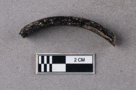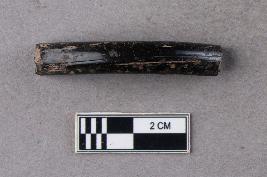 | Description / विवरण | An opaque, semi-circular glass bangle fragment. The fragment is black in colour. Striations are clearly visible on both surfaces. |