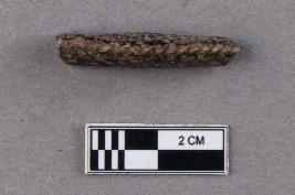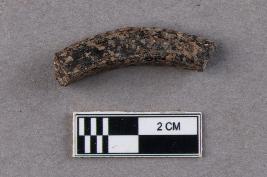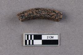 | Description / विवरण | An opaque, smooth glass bangle fragment that is black in colour. The cross-section appears to be triangular as a decorative band of black and white runs along the middle of the exterior surface of the bangle. |
