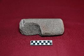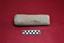 | Description / विवरण | A partially broken specimen of a pestle with rough surface, it is made of sandstone, it is plano convex in shape with prominent holding end. |