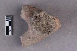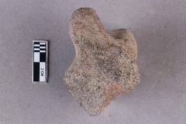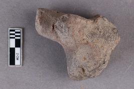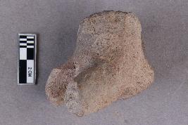 | Description / विवरण | The hind part of a terracotta animal figurine with extended hind limbs that are broken and a small projection for a tail at the back which is also broken. It is red in colour with a greyish core. |