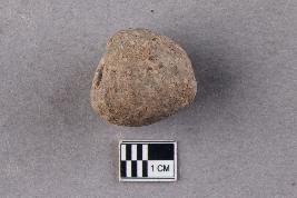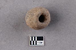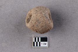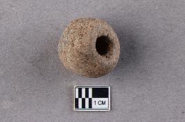 | Description / विवरण | An irregularly rounded terracotta bead with perforation through the central axis. |