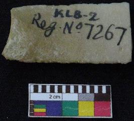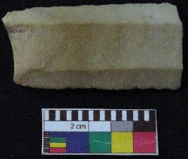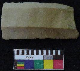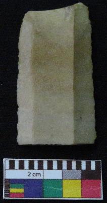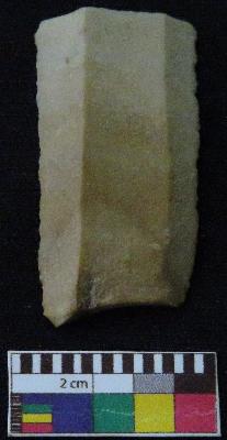 | Description / विवरण | Fragment of stone blade is in brownish color, made of fine-grained chert stone, having broken ends, retouched parallel sides, smooth surface and double ridge on top part. |