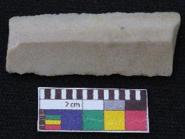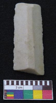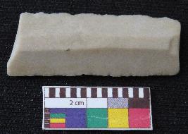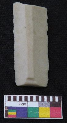 | Description / विवरण | Fragment of stone blade is in off-white color, made of fine-grained chert stone, having broken ends, retouched parallel sides, smooth surface and double ridge. |