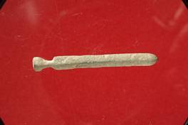 | Description / विवरण | Sword with small butt. Object has prominent middle ridge with convex tip. Two sides are sloped. Object is covered with thick layer of patina. |