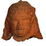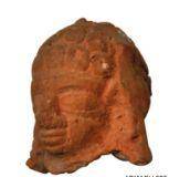 | Description / विवरण | A terracotta human head with neatly combed hair and decorated with crescent jewels all over the head. Oval face, elongated fattened nose, protruding eyes thick lips. Hair tied with a band at the side. |