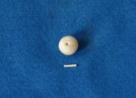| Description / विवरण | A spherical shaped bead of chalcedony in white colour with a smooth surface and perforation at the center. |