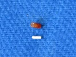 | Description / विवरण | A tubular shaped bead of carnelian in red colour with perforation at the center and a smooth surface. |