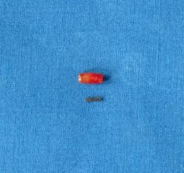 | Description / विवरण | A tubular shaped bead of carnelian in red colour with perforation at the center and a smooth surface. |