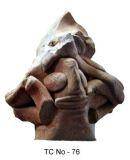 | Description / विवरण | Hand made archaic terracotta figure of a tribal with slightly conical shaped face, small flat head, long stout nose, wide thick lips, round, big, bulged eye balls, no specific chin, appliquely thick bifurcated horns on either side of the face, wears a thick mask over the head. The colour of mask differs from the face of head. The mask appears to be head of an animal with pinched eyes and projected nose. |