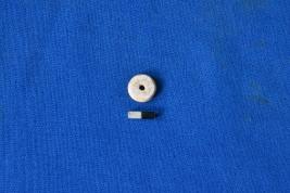 | Description / विवरण | A disc shaped bead of shell in white colour with a perforation at the center and a well finished surface. |