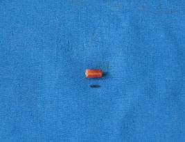 | Description / विवरण | Tubular shaped bead of carnelian in red colour with perforation at the center and a smooth finish at the surface. |