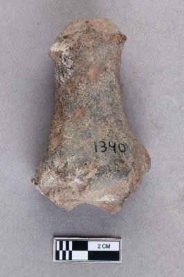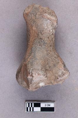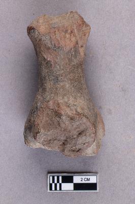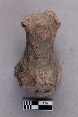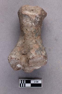 | Description / विवरण | A terracotta animal torso with broken hind and forelimbs, and evidence of a protruding tail, that is also broken. It is grey in colour with a reddish core. |