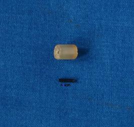 | Description / विवरण | Short cylindrical shaped bead of quartz in white colour with perforation at the center and a smooth surface. |