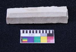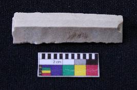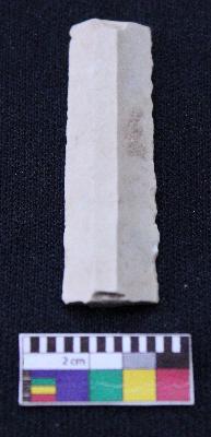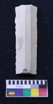 | Description / विवरण | Blade is off-white in color, made of fine-grained stone, having both ends broken, smooth body, retouched parallel sides, two ridges and triangular section. |