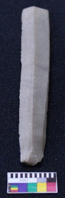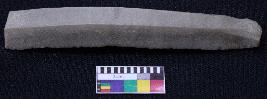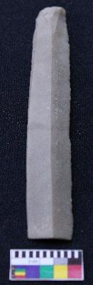 | Description / विवरण | Blade is made of fine-grained stone, having positive bulb of percussion on one end and other end is broken, smooth body, one side is retouched, mid ridges and triangular section. |