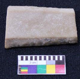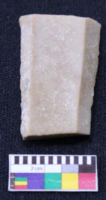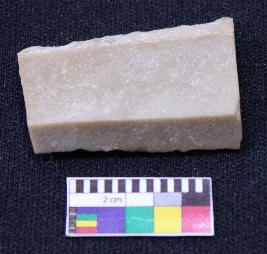 | Description / विवरण | Fragment of blade is light brown in color, made of fine-grained chert stone, having both ends broken, smooth body, retouched sides and two ridges. |