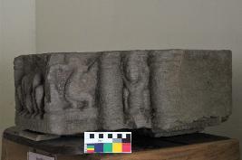| Description / विवरण | It is a stone block, showing an erotic female figure . The figure is seen seated. The head portion is mutilated. The figure is decked with ornaments. The two sides of the stone block carry a varbahok and animal figures. |