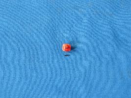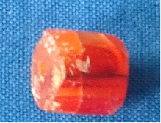 Cylindrical shaped bead of carnelian in red colour with a perforation at the center and a smooth surface.