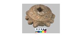 | Description / विवरण | A fragment of an amalaka, with a square-shaped perforation at the center of the top surface of the architectural member. |