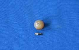| Description / विवरण | A spherical shaped bead of agate-carnelian in yellowish colour with a smooth surface and perforation at the center. |