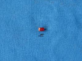 | Description / विवरण | Cylindrical shaped bead of carnelian in red colour with dark red bands on the surface and a perforation at the center. |