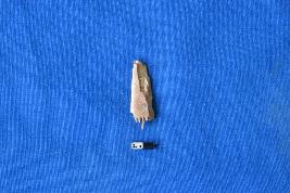 | Description / विवरण | A fragment of a comb made out of bone with a couple of teeth remaining and a smooth finishing at the surface. |