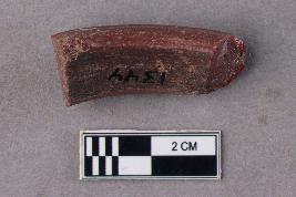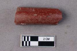 | Description / विवरण | An opaque, smooth, glass bangle fragment with a reddish core and a maroon exterior. |