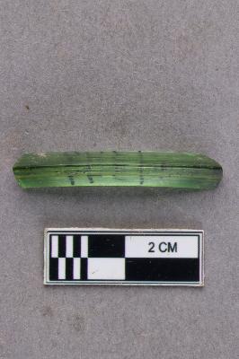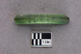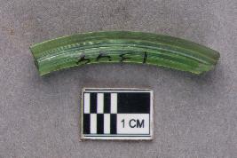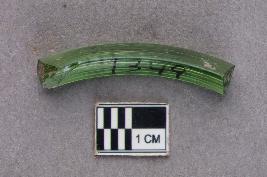 | Description / विवरण | A smooth, translucent, bangle fragment of glass. The colour is green. The cross-section is triangular. |