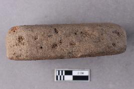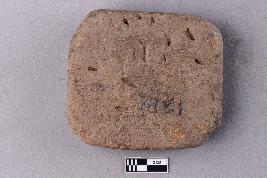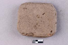 | Description / विवरण | A roughly square, flat terracotta tile. The surfaces are somewhat smooth and the edges are rounded. There are visible rice husk impressions on both surfaces of the tile. |