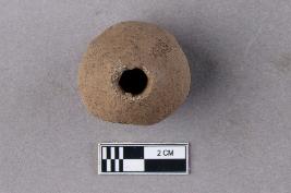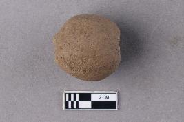 | Description / विवरण | A smooth, irregularly spherical bead of terracotta. It is reddish and has a central perforation. |
