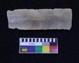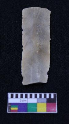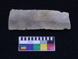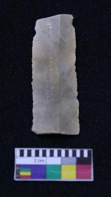 | Description / विवरण | Fragment of blade is dull orange in color, having broken ends, sides retouched, ridges on the top and triangular section. |