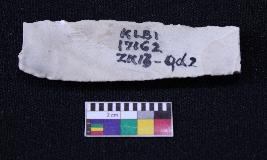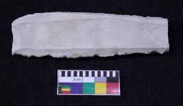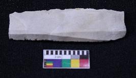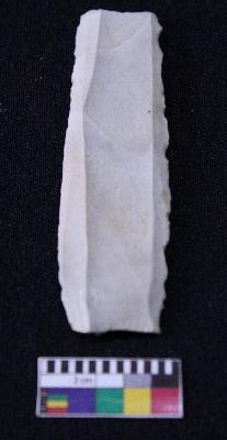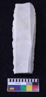 | Description / विवरण | Fragment of blade is white in color, having broken ends, retouched sides and ridges on the top. |