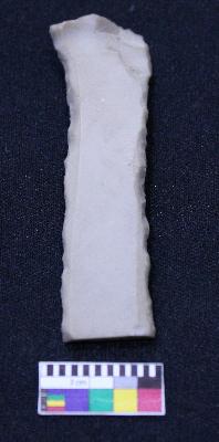 | Description / विवरण | Fragment of blade is having positive bulb of percussion at one end, other end is broken, retouched parallel sides and thin section. |