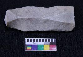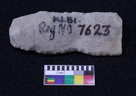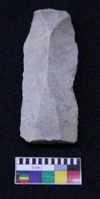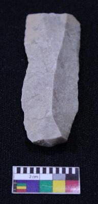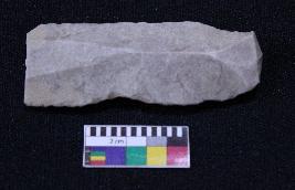 | Description / विवरण | Fragment of blade is off white in color, having positive bulb of percussion at one end, other end is broken, retouched parallel sides and ridges on the top. |