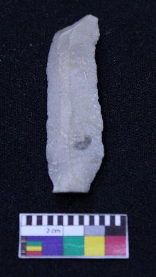 | Description / विवरण | Complete blade is off white in color, having positive bulb at one end, other end is pointed, retouched curved sides and mid ridge on the top. |