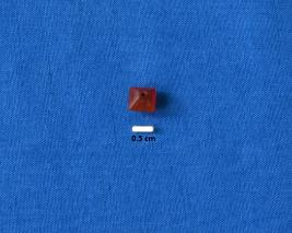 | Description / विवरण | Four faceted biconical bead of carnelian in red colour with a perforation at the center and a smooth finish at the surface. |