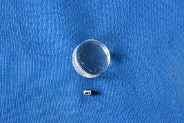 | Description / विवरण | An intact circular shaped lens like object of transparent glass with a well finished surface and a thick cross-section. |