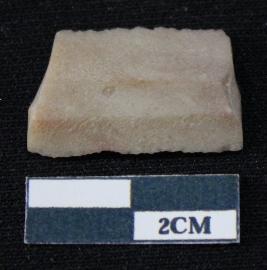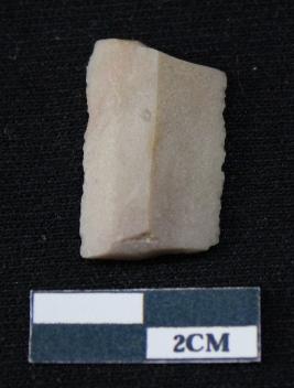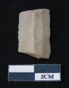 | Description / विवरण | Fragment of blade is off white in color, having both ends broken, retouched sides, ridges on the top and triangular section. |
