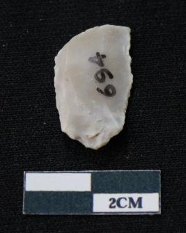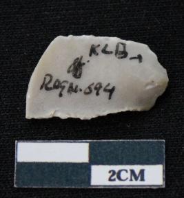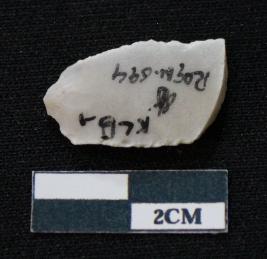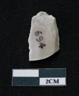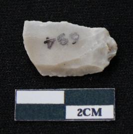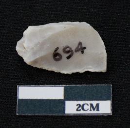 | Description / विवरण | Fragment of blade is off white in color, having positive bulb of percussion at one end other end is broken, retouched sides and thin section. |