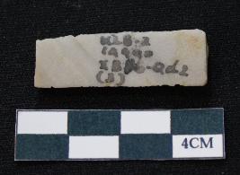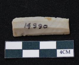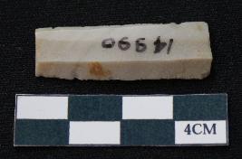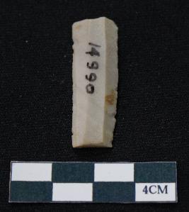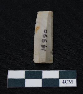 | Description / विवरण | Fragment of blade is off white in color, having both ends broken, retouched sides, ridges on the top and thin section. |