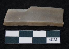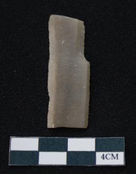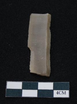 | Description / विवरण | Fragment of blade is dull brown in color, having both ends broken, retouched sides and rectangular thin section. |