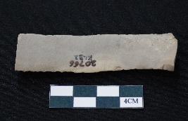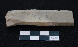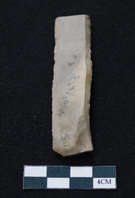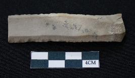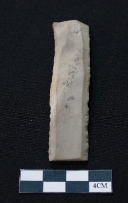 | Description / विवरण | Fragment of blade is off white in color, having one end broken, sides are retouched and thin rectangular section. |